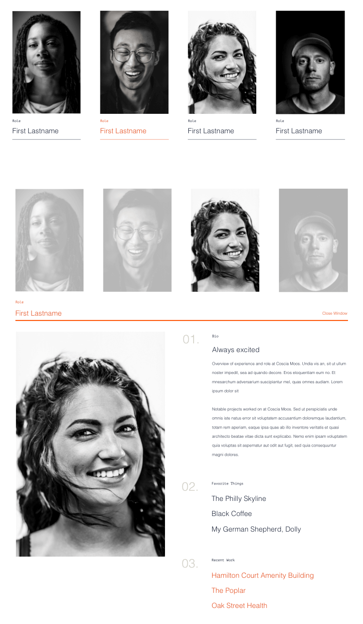 This is one of the most beautiful websites I've had the pleasure of working on. Many of the components and animations I built for this site are hard to explain in words, they were actually shown to me as short videos. If you visit their site you should be able to see what I mean. I would encourage you to check their Home, and About pages you can see what I mean.